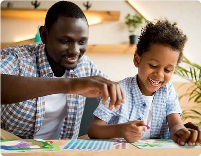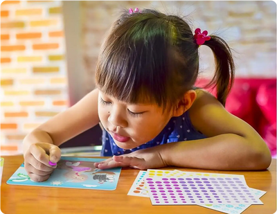 Let your child choose their favorite color stickers, peel & paste the stickers and bring the picture to life!