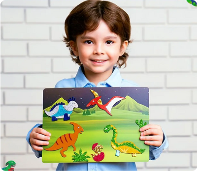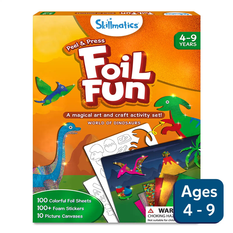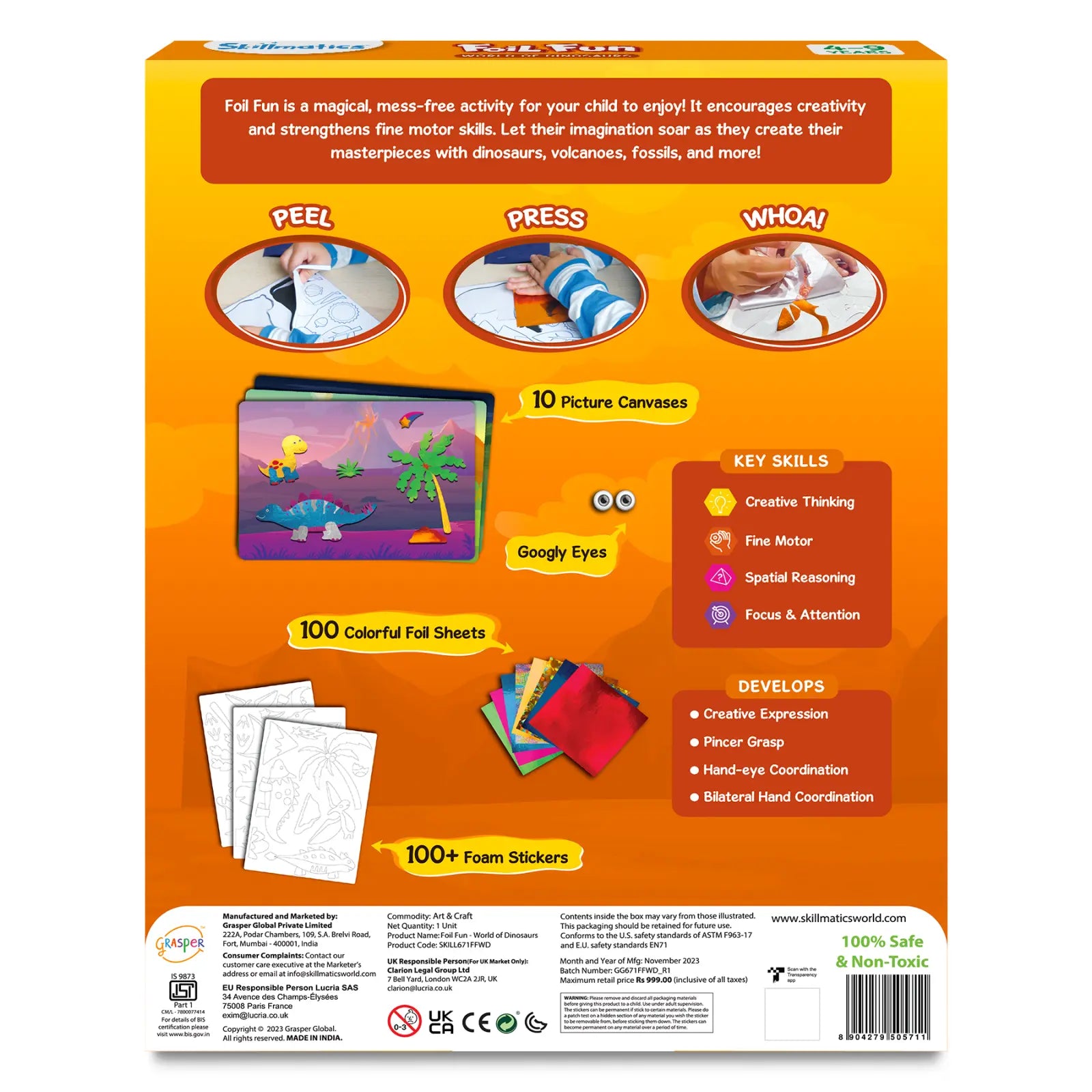 Let your child's imagination soar with this magical, mess-free foil art and craft activity. They can create unique foil pictures featuring dinosaurs, volcanoes, fossils and more, sparking hours of creative play!