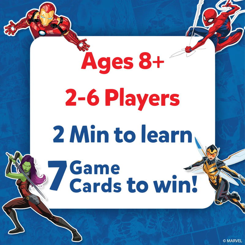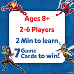 Marvel-themed trivia card game for 2-6 players ages 8+ with quick 2-minute gameplay