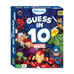 Marvel-themed Guess in 10 trivia card game for ages 8 and up featuring superhero characters