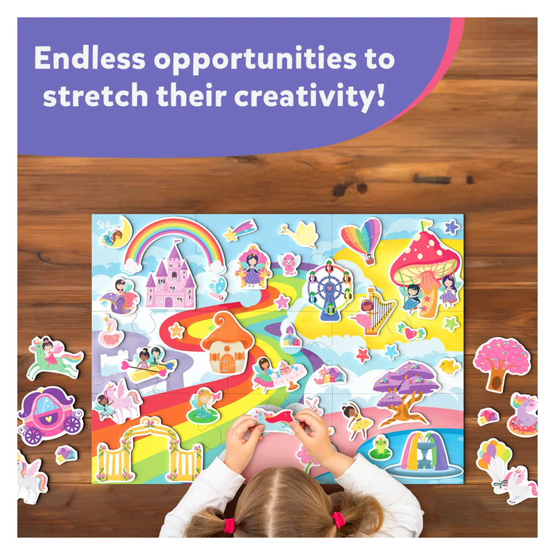 Introducing Magnetopia - Princess & Unicorn Land! Build your dream world, as many times as you like, with 9 large puzzle pieces to create the backdrop for magical fun. Then, add princesses, unicorns, castles, fountains, and more. With over ...