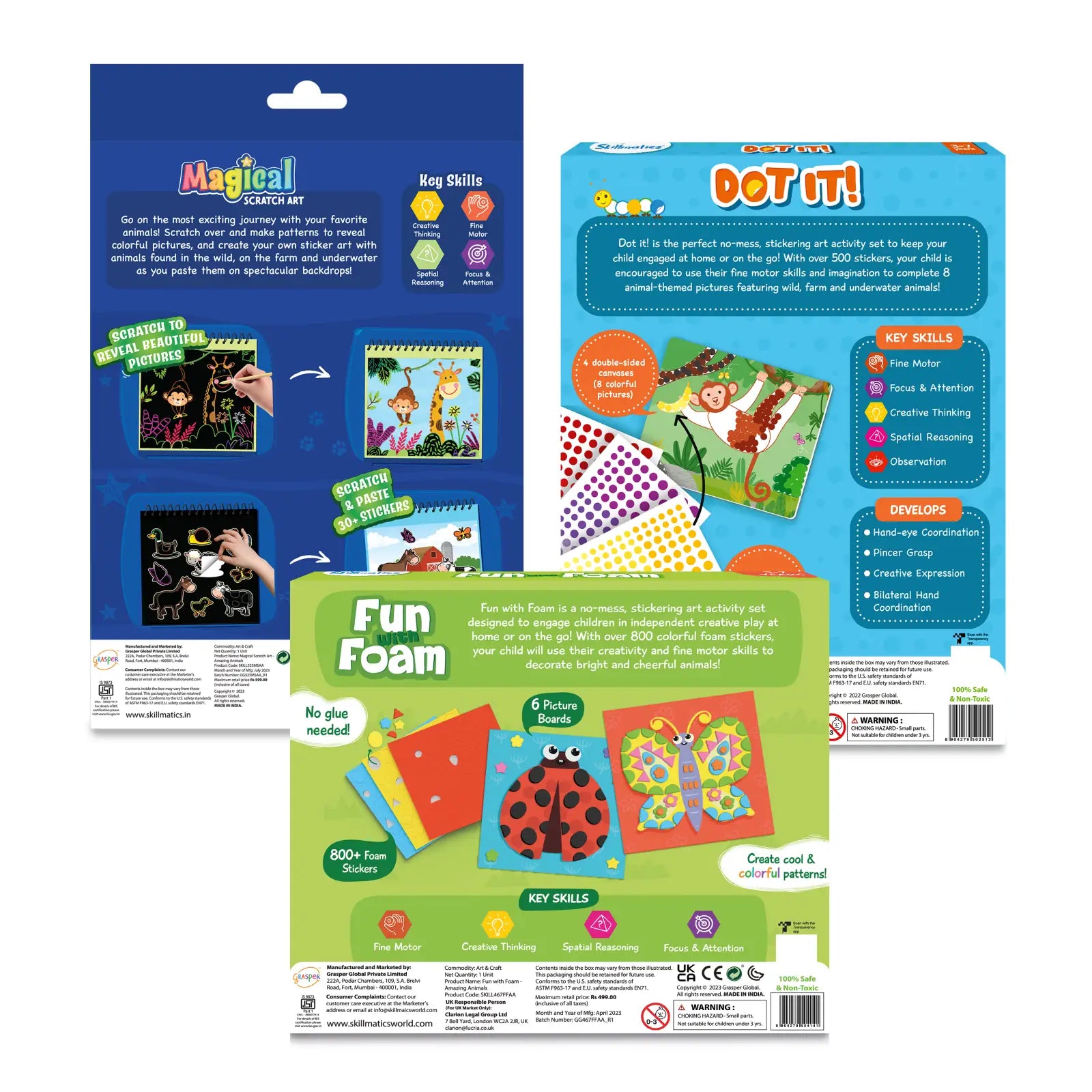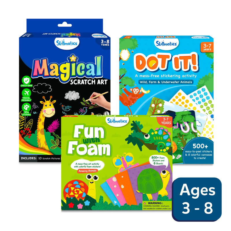 Skillmatics art and activity kits for children ages 3-8 including Magical Scratch Art Dot It and Fun with Foam